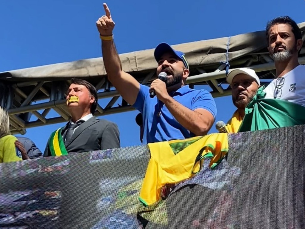 Nikolas Ferreira também subiu ao trio elétrico e foi enfático: "Nós estivermos aqui, nós vamos lutar por esse Brasil verde e amarelo, e não há juízes, não há ordem de 9 dedos que vai parar o país com propósito. Nós somos o Brasil verde e amarelo, nós somos o Brasil que não desiste, e sabe quando nós iremos parar - Nunca!".